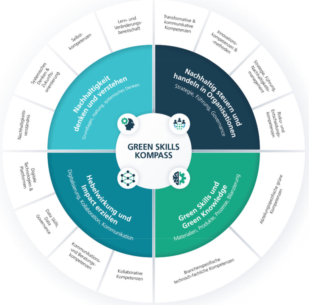 Fähigkeiten und Kompetenzen, aber auch das Wissen & die Fertigkeiten, Werte & Haltungen, die notwendig sind, um in einer ressourceneffizienten, ökologisch, ökonomisch & sozial nachhaltigen Wirtschaft und Gesellschaft zukunftsorientiert zu handeln.